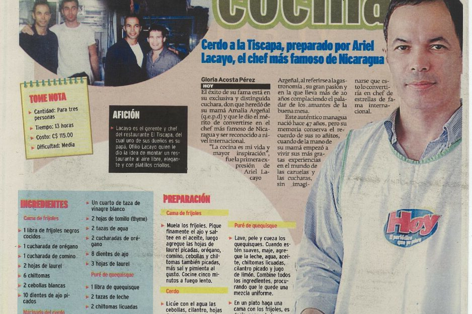 Ariel Lacayo Argueñal, un hanbre con buena sazón
