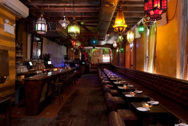 Le Souk, a top rated West Village hot spot, specializes in Moroccan-French cuisine.