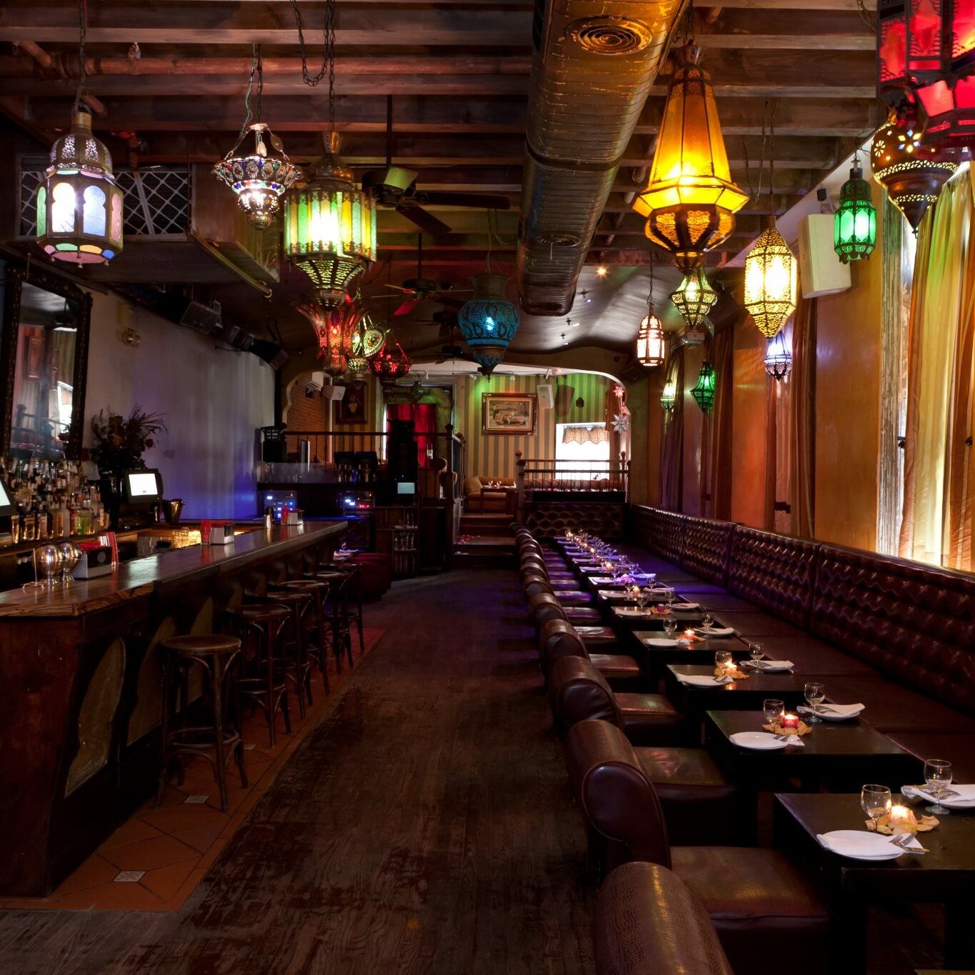 Le Souk, a top rated West Village hot spot, specializes in Moroccan-French cuisine.